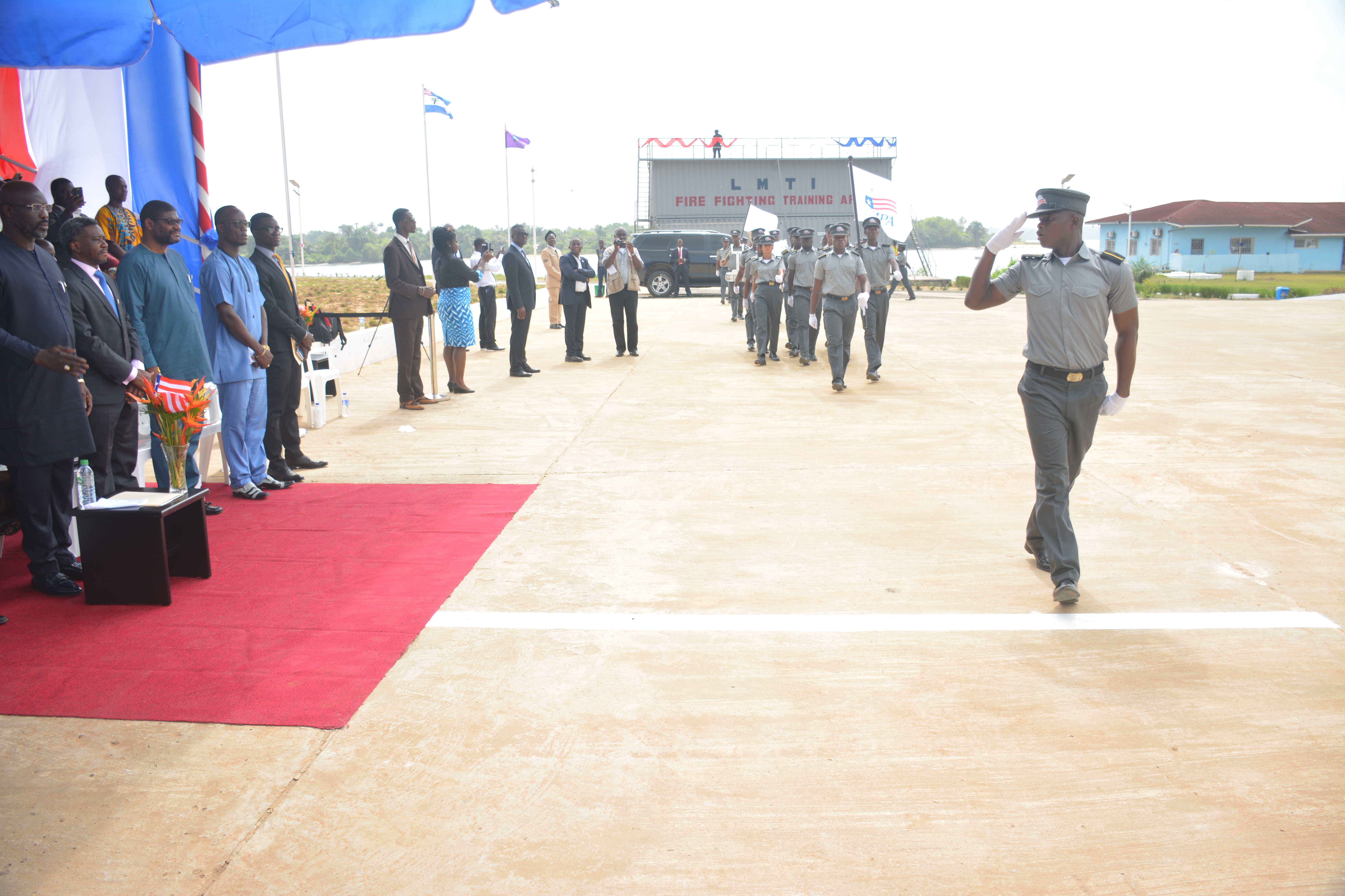 Cadets and Senior staff posing with President WeahCadets' paradecadets posing with President Geaorge M WeahCadets posing with President Weah and senior staff and guestsCadets posing with President Weah Feb 2018Campus tourCommandant Capt.Menon and Operations Manager Col.PanwarEscorting President Weah on campus visitInspecting GymnasiumIntroducing Adam Cohen LISCR Co-ChairmanIntroducing Commandant, Capt.Ashok MenonIntroducing Dy.General Manager, Tal HendlerIntroducing Elan Cohen- LISCR Co-ChairmanIntroducing LISCR & LMTI teamInviting President for Parade inspectionLiMA Commissioner remarksLISCR Co-Chairmen with LMTI Senior teamLMTI ChoirPass-in review 2Pass-in review by CadetsPresident admiring Ship's bell donated by d'Amico ShippingPresident Gearge M Weah visit Feb 2018 with LISCR Co-ChairmenPresident on campus tour 2President on campus tourPresident posing in front of Ship's BellPresident 's messagePresident touring the LMTI campusPresident Weah enjoying LMTI Choir groupPresident Weah greeting children from MarshallPresident Weah inspecting LMTI Training poolPresident Weah with LISCR C-Chairmen and Chairman, LMTI with CadetsTaking the Salute!Tour of the campus in progressVisiting the technical workshopVisiting Training swimming poolWelcoming the President